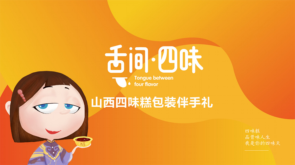 為了突出包裝產(chǎn)品特色,配合四味糕四味的特點(diǎn),想到了舌尖四味、嘴間四味和晉之四味三個(gè)名稱,最終決定為“舌尖四味”,“舌尖”二字仿佛就在嘴中的感覺,讓品嘗者浮想聯(lián)翩,仿佛香味就在自己身邊。