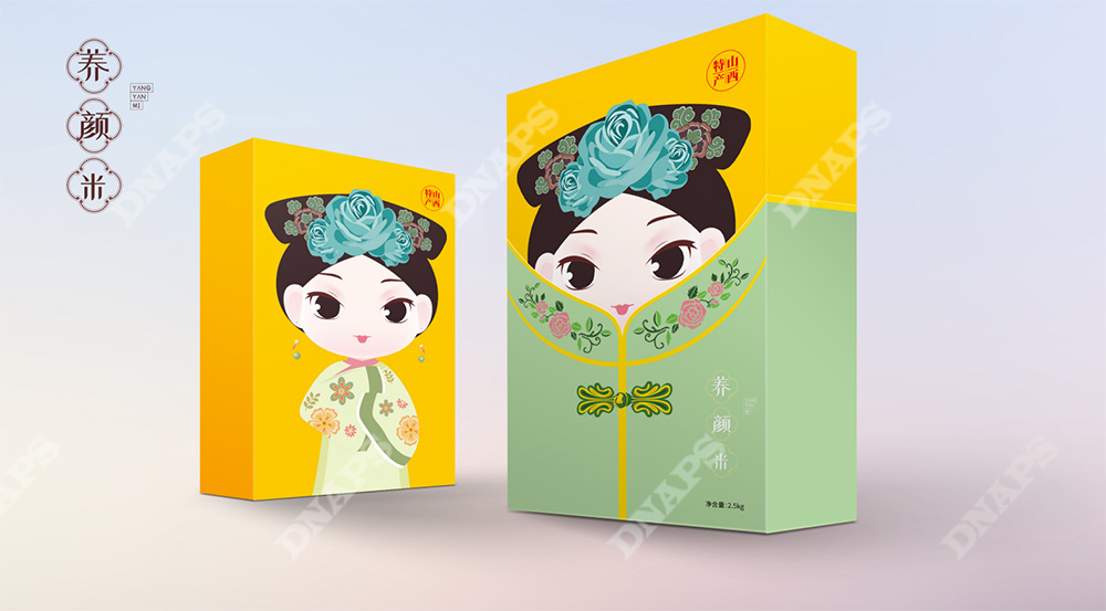 區(qū)別于傳統(tǒng)小米包裝,根據(jù)小米的不同搭配將小米分為月子米,成長(zhǎng)米,養(yǎng)顏米3類(lèi),視覺(jué)上分別以成對(duì)的嬰兒、小孩、年輕女性/媽媽為主要形象元素,采用現(xiàn)代插畫(huà)的形式創(chuàng)造三組萌趣生動(dòng)的形象,畫(huà)面生動(dòng)富有張力,配色清醒典雅,增強(qiáng)產(chǎn)品親和力。包裝盒外加設(shè)計(jì)有古典服飾圖形的封套,整體形式新穎富有層次感,拆掉封套將呈現(xiàn)另一幅畫(huà)面,開(kāi)盒有趣味,讓整體形成記憶點(diǎn)。