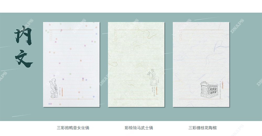 晉寶藏文物插畫筆記本封面選取在山西博物院中以玉器、琉璃、青銅器、陶器、瓷器為代表的五件器物來進(jìn)行手繪,內(nèi)文同樣是手繪的各種類文物,整套筆記本圍繞古代東方藝術(shù)博物館主題展現(xiàn),加以精致的燙金及UV工藝,做工精美,意義重大。